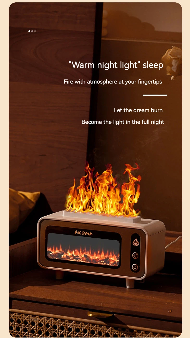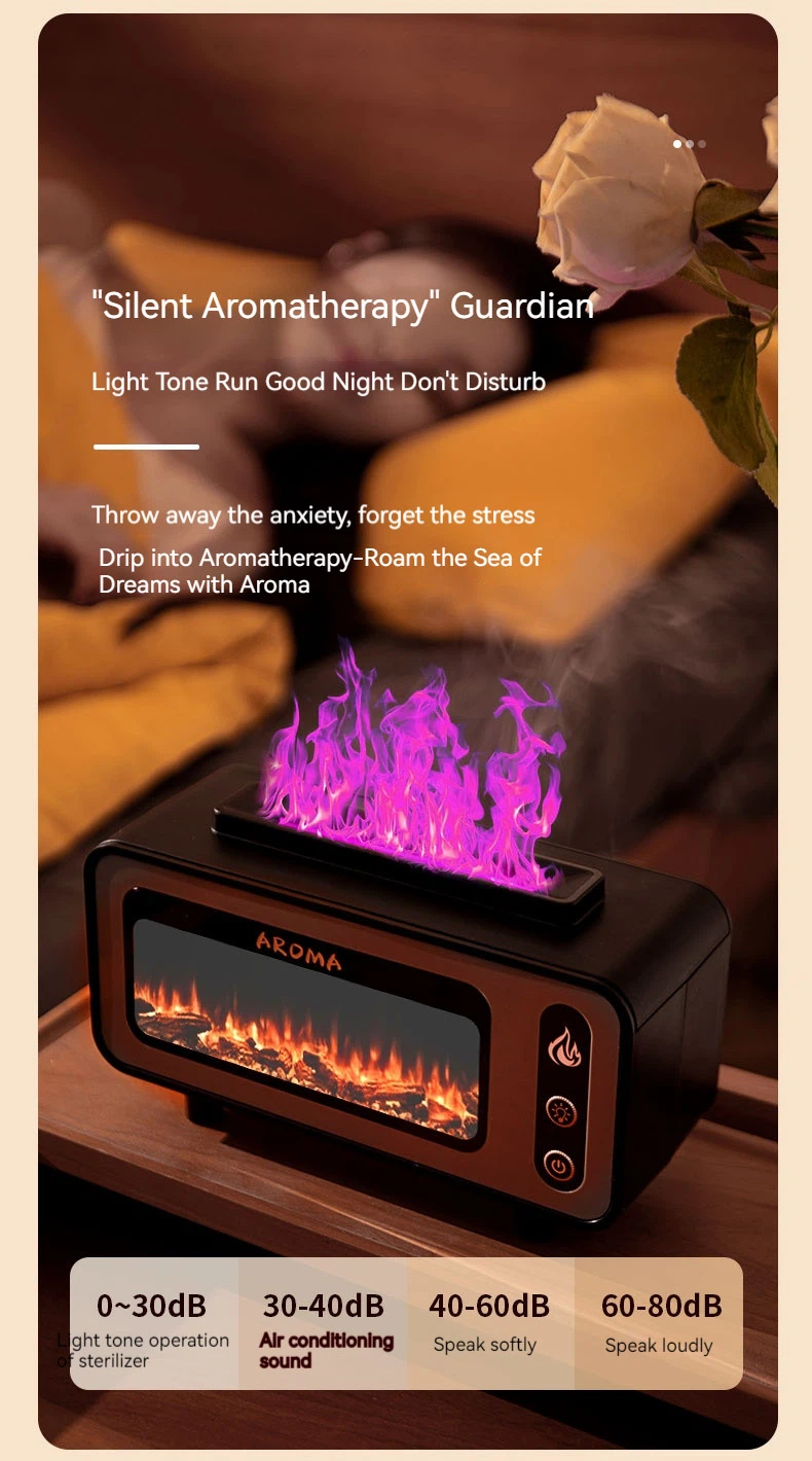 Efecto de la luz de la llama: este difusor de aroma a la llama está diseñado con chip inteligente y niebla fría que puede generar el efecto de la llama, con 2 modos se puede ajustar el brillo de la llama, la llama en quema realista 3D traerá la atmósfera de romántica y la curación por la noche .